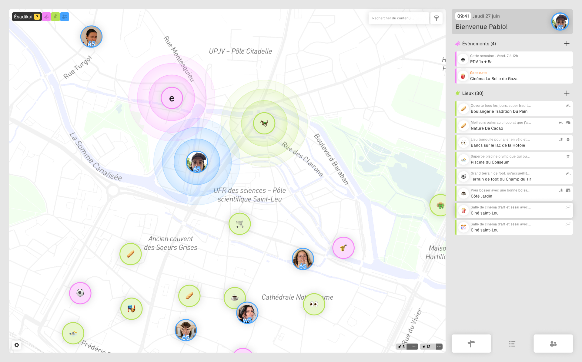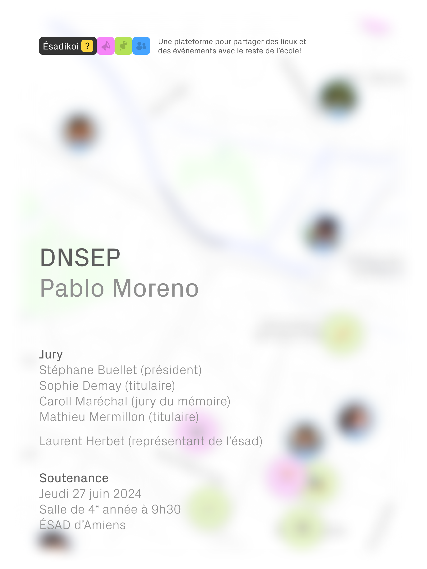 The idea behind my diploma project was to design digital tools that simplify and enhance everyday life at school — and beyond it. As part of my research, I focused on identifying the key features the platform should offer and explored different interfaces concepts for them. Elements such as taxonomy, temporality, and the relationships between people were carefully considered to shape how information is connected and experienced. Later on, I built éSADIKOI [eh! ça dit quoi?] around three main pillars: events, places and people. Thanks to a lightweight spreadsheet-based CMS, students and staff can easily add and update entries, fostering connection and participation within the school community. Visit website