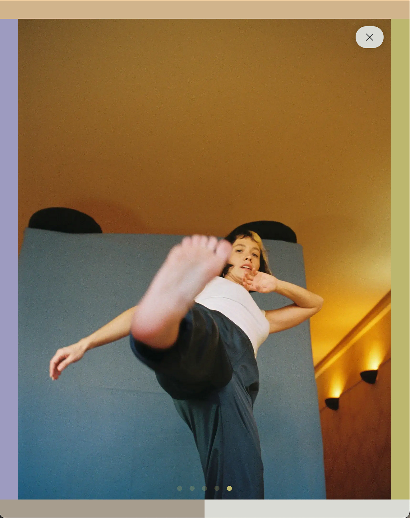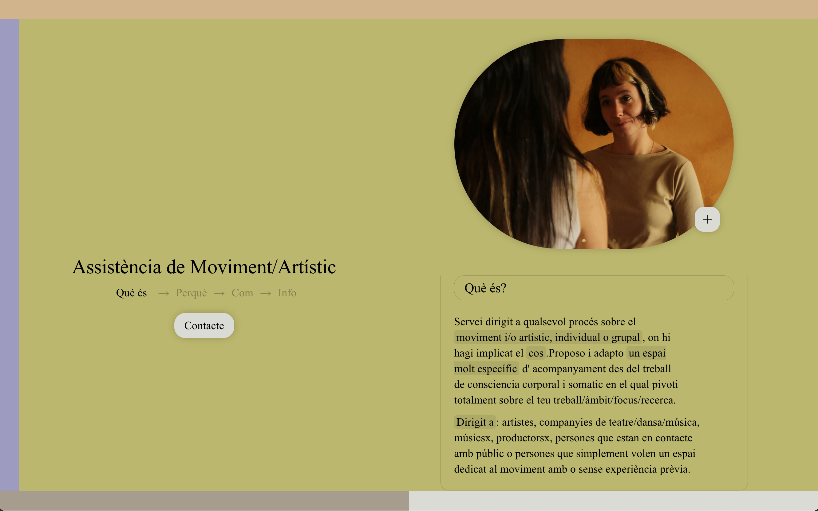 Aiming to explain Nerea's somatic dancing practice, the website relies on a very text-based content that offers a literary reading experience while maintaining a digital rhythm. Images appear either as small visual accents or in full-screen frames, creating a balanced contrast. The limited number of pages allows navigation through the colored blocks that frames the website, keeping the experience clean and smart. Visit website