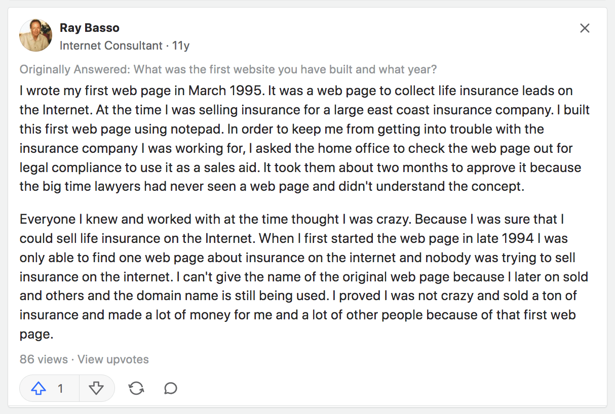 Le réseau n'était qu'à ses débuts et il ne servait qu'à une très petit nombre de personnes.
